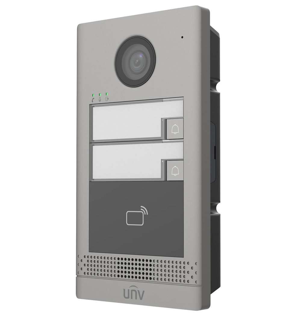 Стандартный PoE/ 12В DC, IC считыватель; Хранилище: 10000 карт, Встроенный микрофон и динамик, 1 RS485 интерфейс, 1 Wiegand, 2 реле, 4 тревожных входа, IP65, IK08, -40°C ~ 60°C, Поддержка приложения UNV-Link