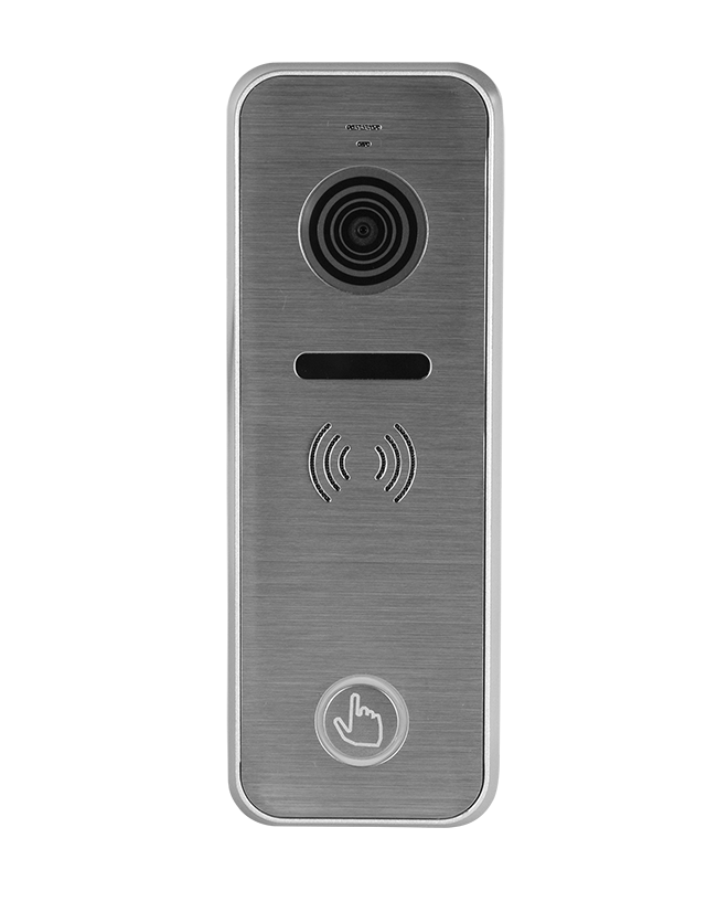 Антивандальная вызывная панель видеодомофона. Цветная CMOS AHD видеокамера с разрешением 1080p (с возможностью переключения в формат 720p или CVBS (PAL)). Угол обзора видеокамеры 110 градусов (для формата 1080p). ИК-подсветка не видима глазу человека. Режим «День/Ночь» с автоматически убираемым ИК фильтром для правильной цветопередачи в ночное время. Материал лицевой панели: нержавеющая сталь.