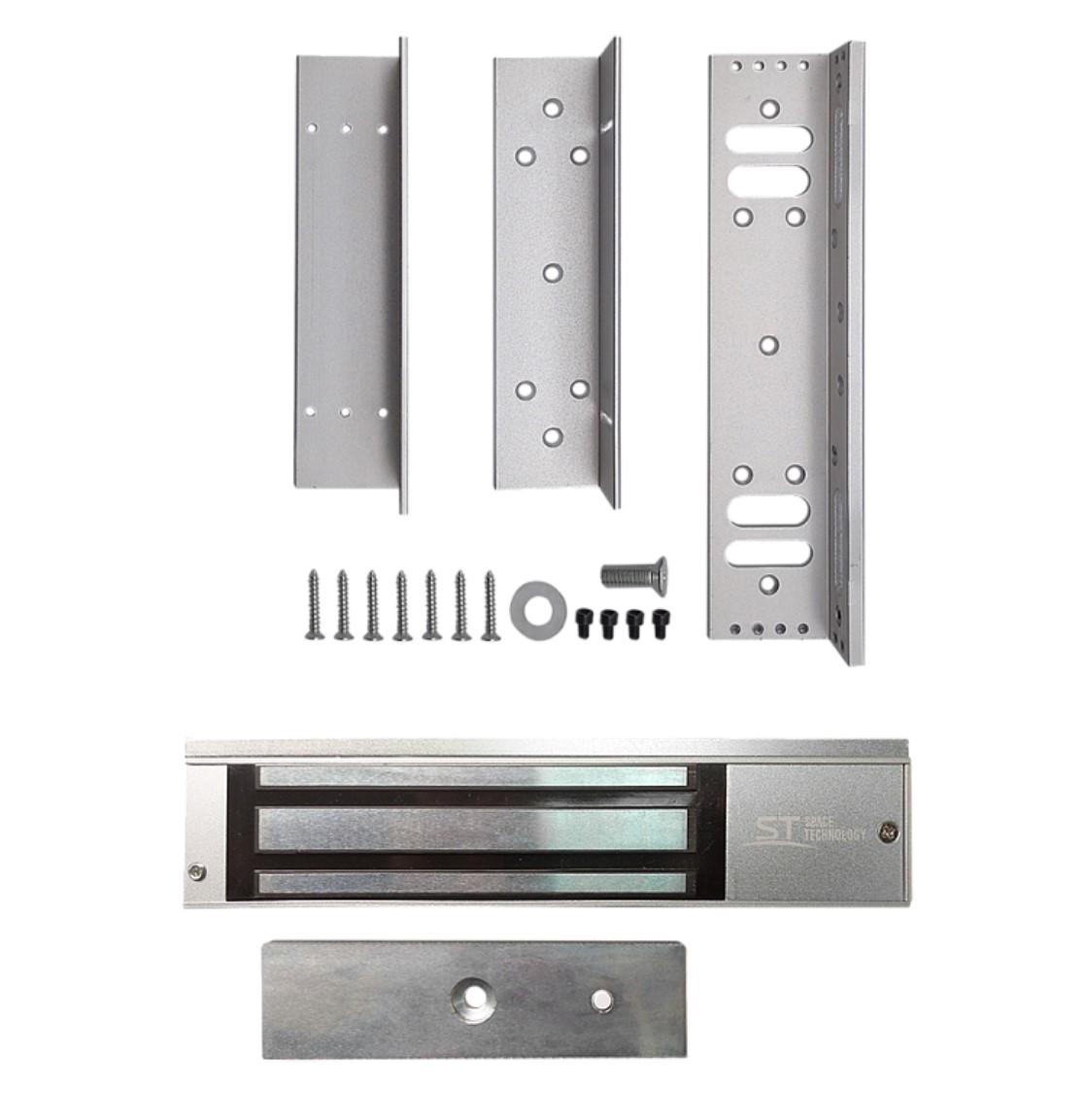Замок электромагнитный ST-ML350-1 с ST-ZLA350-1, ST-ML350-1 предназначен для запирания дверей, ворот, калиток с возможностью дистанционного открывания,в том числе для работы совместно с аудио и видеодомофонами, контроллерами СКУД и кодовыми панелями, ST-ZLA350-1 -ZL-образное крепление для электромагнитных замков предназначено для крепления электромагнитных замков на двери, открывающиеся внутрь,для электромагнитных замков с силой удержания 350 кг.Материал креплений – алюминий, Рабочее напряжение: 12-14В, Ток потребления: 460мА, Сила удержания: 350кг, –40..+50°C, 250*27*50 мм.