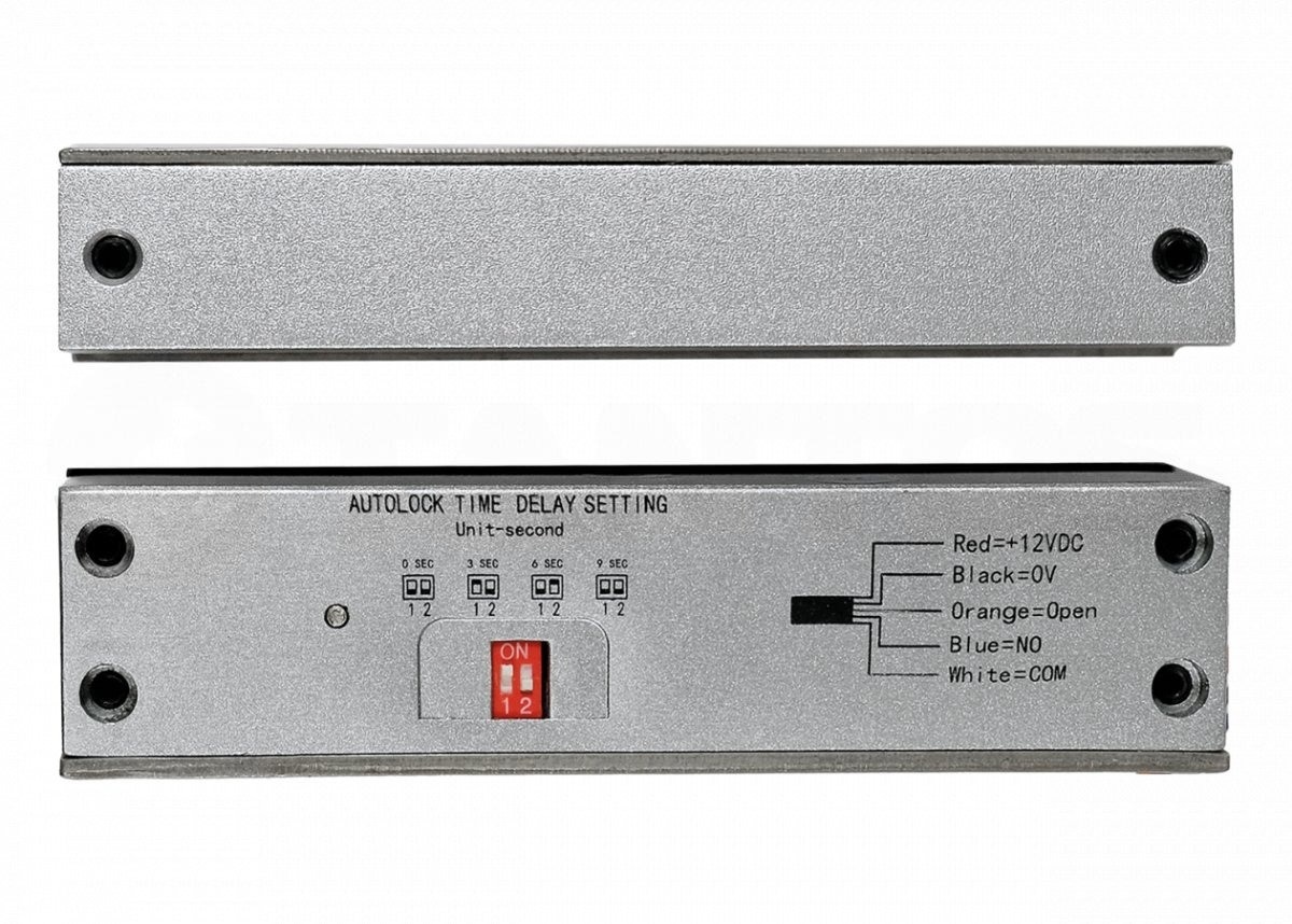 TRD-2086G Накладной соленоидный электромеханический замок для стеклянных дверей (толщина стекла 10-12мм). Нормально открытый. Регулируемое время задержки 0, 3, 6 и 9 сек. Встроенный датчик положения двери. Питание 12В +/-15%. Ток не более 0,96А.