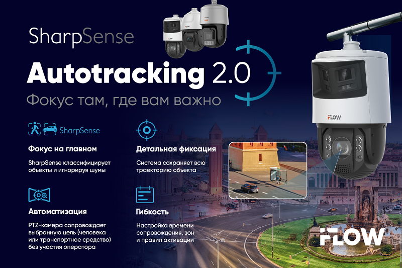 Камеры с фиксированным видеомодулем обеспечивают контроль лишь в пределах заданного угла обзора, а стандартные PTZ-камеры требуют постоянного внимания оператора или работают по заранее заданным сценариям, что не гарантирует фиксации важных событий в реальном времени. Интеллектуальная функция автоматического сопровождения цели Autotracking 2.0 от iFLOW решает эту проблему, обеспечивая высокий уровень безопасности объектов.